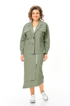 Жакет полуприлегающего силуэта мягко подчеркивает фигуру, V-образный вырез добавляет утончённости, а красивенные золотые пуговицы становятся деликатным акцентом, придающим образу благородное сияние. Юбка с аккуратными рельефами формирует изящный силуэт, а мягкий пояс с резинкой по бокам обеспечивает комфортную посадку и ощущение свободы в движении. Подкладка делает костюм особенно приятным и завершённым, а шлица добавляет лёгкости шагу и подчёркивает женственность образа.