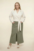 Юбка со встречными складками по переду и спинке и застежкой в боковом шве. Выполнена из легкой ткани-компаньона, на подкладке.