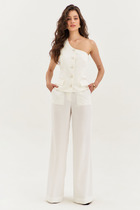 Нарядный женский комплект из гладкой ткани с атласной структурой украсит вас на любом праздничном или торжественном мероприятии.