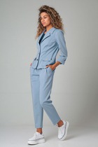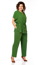 Комплект состоит из джепера и брюк выполнен из полупрозрачного полотна розового цвета. Характеристики: джемпер прямого свободного кроя, овальный широкий вырез горловины, рукав спущен. Длина по спинке от края горловины 72 см, длина рукава от края горловины 75 см. Брюки прямого, свободного кроя, пояс брюк на резинке. Длина брюк по боковой линии - 110 см.