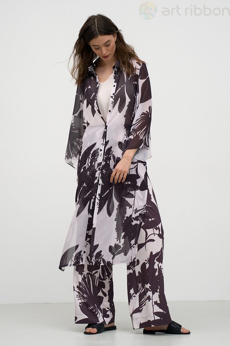 Стильный и яркий комплект, состоящий из туники и брюк займет достойное место в вашем гардеробе. Туника изготовлена из легкого и драпирующегося шифона, придающего ей элегантность и легкость. Воротник - стояче-отложной. Рукав втачной, свободного кроя. Застежка центральная на петли и пуговицы. Брюки широкие с карманами, пояс на эластичной тесьме. Фотография может незначительно отличаться по оттенку из-за различий в цветопередаче мониторов.