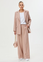 Комплект женский состоящий из жакета и брюк. Жакет прилегающего силуэта с застёжкой спереди на пуговицы, с отложным воротником с лацканами, с фигурным подрезом по переду и спинке и вставкой из сетки, с карманами по переду, с втачным рукавом. Изделие на подкладке. Брюки узкие, на поясе-кокетке, с застёжкой спереди на молнию и пуговицы, с боковыми карманами и стрелками.