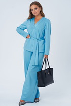 Комплект женский, состоящий из жакета и брюк-капри. Жакет прилегающего силуэта с застёжкой спереди на петли и пуговицы, с воротником отложным с лацканами, с карманами по переду, с втачным рукавом. Изделие на подкладке. Капри длиной за калено, узкие на поясе, с застёжкой спереди на молнию и пуговицы, с карманами, с разрезиками по низу боковых швов.