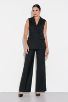 Жакет прямого силуэта, с центральной застёжкой на петли и пуговицы. Перед с накладными карманами и клапанами.Спинка со средним швом.Низ жакета на притачном поясе,по спинке с патами и декоративными пуговицами.Плечи слегка спущены.Рукава длинные, можно завернуть манжеты и застегнуть паты на петли и пуговицы до 3/4 длиной.