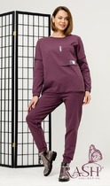 Костюм женский из трикотажного полотна «кулирка» с набивным рисунком, состоящий Футболка – из полотна с набивным рисунком, свободного покроя, с короткими втачными рукавами, горловиной овальной формы, окантованной основным материалом. На полочке выполнена вышивка.Шорты - из полотна с набивным рисунком, свободные, с карманами в боковых швах, на притачном поясе с эластичной тесьмой внутри. Детали передних половин разрезаны по косой, в шве соединения кант контрастного цвета.