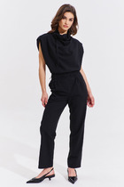 Деловой и нарядный костюм, состоящий из двух предметов: блузки и брюк, идеально подходит для выхода и городских будней, выполнен из ткани «французский креп», которая отличается особой мягкостью и изысканностью, красиво струится и имеет легкий стрейч.