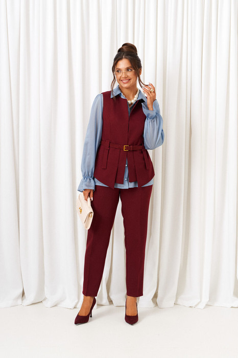 Деловой комплект 3-ка, состоящий из трех предметов: блузки, брюк и жилета.