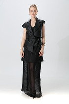 Низ изделия ровный, в боковых швах предусмотрены высокие разрезы.