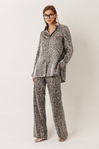 Комплект женский трехпредметный, состоит из ветровки, майки и брюк. Ветровка свободного силуэта, выполнена из хлопковой ткани без полкладки с накладными карманами на полочке и кулиской на талии. Рукав втачной с притачным манжетом на резинке по низу. Застежка молния. Длина ветровки по спинке 80 см. Майка полуприлегающего силуэта, выполнена из вискозы. По центру притачная аппликация. В боковых швах разрезы. Брюки полуприлегающнго силуэта с высокой посадкой, выполнены из хлопковой ткани. Пояс на резинке. В боковых швах карманы с листочкой.Длина брюк 100 см.