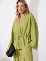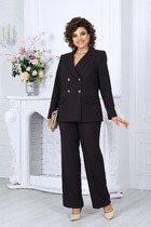 Комплект женский трехпредметный, состоит из кардигана, блузона и кюлот. Кардиган без застежки, рукав втачной 3/4 с притачным довязом. Длина кардигана 83 см. Блузон двухслойный без рукава на широких брителях. Кюлоты на резинке с карманами в боковых швах и на подкладке. Длина кюлот 100см.