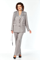 Костюм женский свободного силуэта. Состоит из блузки и шорт. Выполнен из хлопковой ткани. Блузка с центрально-бортовой застежкой на петли и пуговицы, воротник втачной на стойке, одна из полочек выполнена из контрастной ткани и украшена карманом, в боковых швах разрезы, рукав короткий втачной. Шорты свободные, в боковых швах карманы, пояс на резинке.