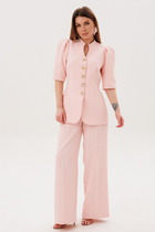 Костюм женский полуприлегающего силуэта, джемпер и юбка. Юбка выполнена из блестящей тани, с отрезной кокеткой, разрезом и каррманоми в боковом шве. Джемпер с цельнокроенным рукавом и разрезами в боковых швах