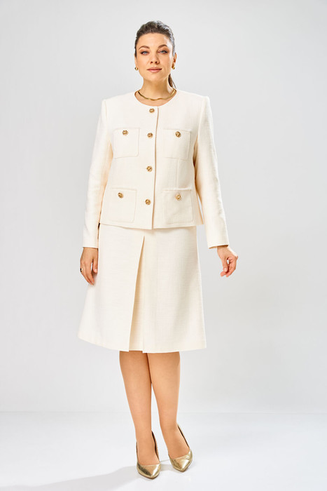 Элегантный женский костюм, выполнен из жаккардовой ткани, состоит из юбки и жакета.