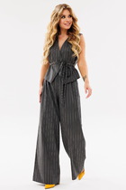 Жакет полуприлегающего силуэта с центральной застежкой на декоративную молнию, лиф с отлетными кокетками по переду и спинке. Горловина оформлена стойкой. По переду на уровне бедер прорезные карманы с листочкой. На линии талии настрочная кулиса с декоративным шнуром. Рукава втачные с манжетой по низу.