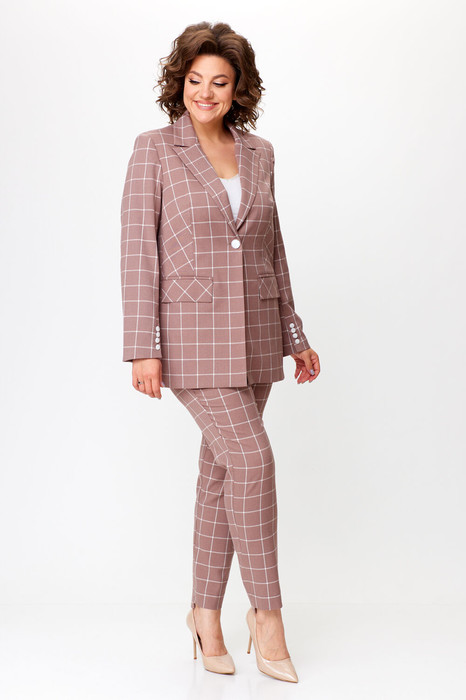 Элегантный женский костюм выполнен в классическом стиле, состоит из жакета и брюк.