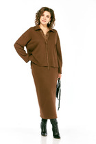 • Юбка с поясом, в котором со стороны спинки закреплена эластичная лента. В боковом шве обработана потайная застёжка-молния. Пояс застёгивается на пуговицу и петлю. Прилагается пояс с декоративной пряжкой, который фиксируется шлёвками.