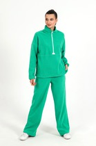 Костюм женский из кулирки футболка+бриджи. На футболке принт в виде надписей, рукав короткий втачной. Бриджи из набивной ткани в виде абстракции, ниже колена с манжетами, без карманов.