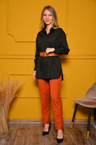 Комплект женский двухпредметный из смесовой ткани. Жакет свободного покроя. Вырез горловины - пиджачного типа фантазийной формы. Застежка - однобортная на петли с пуговицами. Рукава - втачные со спущенной линией плеча. Внизу рукавов - имитация шлиц с пуговицами. Спереди выполнены накладные карманы со складкой и клапаном. По низу изделия - отрезной пояс с мягкими складками для объема. Изделие посажено на подкладку. Юбка - зауженная к низу со шлицой на спинке. Пояс- отрезной с эластичной тесьмой и застежкой на петлю с пуговицей. в боковых швах имеются карманы с отрезными бочками. Юбка декорирована поясом в виде шнурка из основной ткани. Изделие посажено на подкладку.