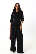 Комплект брючный (кардиган+брюки). Кардиган с цельнокроенным рукавом, с центральной застежкой на петли и пуговицы. Горловина V-образная. Брюки зауженные к низу (на передней половинке по низу застрочена складка). В боковых швах обработанные карманы. Верхний срез обработан поясом с резинкой и шнуром.