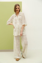 Длина изделия по спинке до талии 47 см, ширинаплеча+ длина рукава 53 см. Длина брюк побоку+пояс 107 см