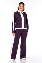 Костюм женский с юбкой из трикотажа. Кофта с цельнокроенными рукавами и отрезными бочками. Перед со средним швом и защипом на 0,2 см вдоль него. Спинка со средним швом. Горловина V-образной формы. В качестве отделки нашивка в правом нижнем углу переда. Юбка длинная, расклешеная к низу. Заднее полотнище со средним швом. Пояс выполнен из декоративной эластичной тесьмы. Внешний вид фурнитуры может отличаться от заявленной на фото.