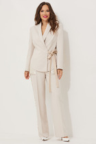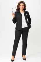 Комплект брючный кофта+брюки. Кофта свободного кроя с центральной застежкой на тесьму-молнию. Спущенная линия плеча, рукав втачной, 2-шовный с пританчым манжетом по низу (довяз). На локтевой части складки. По спинке средний шов. По переду рельефные швы-в швах обработаны карманы. По низу отделочный манжет (довяз). Капюшон со средней частью. Брюки широкие. Верхний срез обработан поясом с резинкой по спинке.В боковых швах обработаны карманы. В качестве отделки используется отделочная строчка и фурнитура.