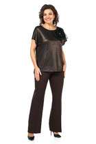 Брюки классической формы, зауженные к низу, на притачном поясе. ЗП брюк с таллиевыми вытачками. ПП брюк с вытачками, боковыми карманами- хулиганами и застежкой на тесьму-молнию в среднем шве брюк. Пояс брюк со шлевками, застегивающийся на пуговицу. Сзади по поясу вставлена резинка.