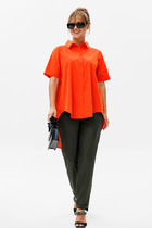 Костюм женский в спортивном стиле изтрикотажного полотна. Жилет свободный, с капюшоном. В кулису капюшона вставлен декоративный шнур. На переде жилета обработан накладной карман кенгуру с обтачными листочками. Низ жилетаобработан притачной планкой. В боковых швах планки с застежкой на кнопки. Брюки прямые с манжетами пояс с эластичной тесьмой с отделочными строчками. В боковых швах карманы.