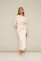Планка горловины, манжеты рукавов и притачной пояс из однотонного трикотажного полотна «кашкорсе».