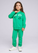 Толстовка с капюшоном регулируется шнурком, добавляя ощущение уюта в прохладные дни, а карман кенгуру придаёт образу практичность. Брюки джоггеры на манжетах, в поясе эластичная резинка и утягивающий шнурок.