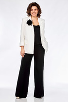 Элегантный брючный костюм в комплекте с шифоновой блузкой.Жакет полуприлегающего силуэта с воротником и лацканами классической формы, застежкой на 1 пуговицу. Особое внимание заслуживает экстравагантная спинка с имитацией запаха и серебристыми металлическими акцентами в виде  цепочек, соединяющих две половинки отлетной спинки.Брюки прямого покроя расширены от линии бедра. Комфортная посадка брюк и подчеркивающий фигуру крой сделает их любимым предметом вашего гардероба.Костюм выполнен из материала модных цветов, не требующего особого ухода, пластичен и удобен в носке.Блузка-туника нежного молочного пастельного оттенка с шифоновыми рукавами. Блуза очаровывает своим красивым непринужденным полуприлегающим силуэтом, фигурной линией низа, и конечно же спинкой.Фантазийная спинка с шифоновыми вставками и воланами, красиво драпирующимися и являющимися одним из популярных трендов, шикарно смотрится как самостоятельно, так и в сочетании с эффектным разрезом на жакете.