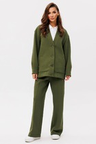 Настоящее произведение искусства!!! Уверенность, элегантность, этого костюма делает его идеальным выбором для важных деловых встреч, корпоративных мероприятий и незабываемых вечерних выходов. Изысканный комплект тройка выполнен из качественной стрейчевой ткани. Топ облегающего силуэта с рельефами по полочке, по спинке выточки и потайная молния в среднем шве. Брюки клёш от колена с за утюженым кантом, которые подчеркнут вашу утонченность и изысканность. Застежка молния по переду, по бокам прорезные карманы, пояс со шлевками и эластичной лентой по бокам. Жакет "BLAZER" без застежки на подкладке, рукав втачной расширенный к низу с декоративной шлицей. Изящность комплекту придает контрастная отделка воротника, планок, разреза шлицы и съемного декоративного цветка ручной работы подчеркнет вашу неотразимость и безупречный вкус.