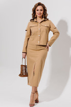 Пиджак костюма имеет отложной воротник, застежку на одну пуговицу и пояс, что обеспечивает комфорт и изысканный вид. Рукава три четверти добавляют образу оригинальности и практичности. Брюки имеют прямой крой, что делает их удобными и подходящими для различных типов фигуры.