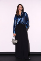 Костюм свободного прилегания выполнен из мягкой немнущейся ткани. Блузон с капюшоном и цельнокроеным рукавом по низу которого кулиса с завязками. По полочки блузона выполнен карманы "рамки", низ блузона затягивается на кулису. Брюки- шаровары на притачном поясе с резинкой, по боковым брюк карманы. низ брюк на кулисе. Декорированы брюки густой дизайнерской вышивкой "кошка" Длина брюк 100 см. длина блузона-62 см.