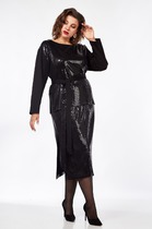 Комплект женский состоящий из блузона и брюк. Блузон прямого кроя с отрезной кокеткой по переду. Рукав приспущенный с манжетой по низу. Брюки высокой посадки с заложенными складками по линии талии и по низу. Изделие на широкой манжете по низу. По брючинам расположены накладные карманы.