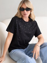 Нарядная футболка с принтом стразами из премиального хлопка с эластаном