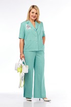 Холодный осенний сезон вовсе не повод отказываться от красивых костюмов, тем более, что среди трендовых моделей есть очень комфортные, уютные и тёплые. Жаккардовое смесовое трикотажное полотно в стилизованную гусиную лапку в модном цветовом решении. Жакет без подкладки, свободного силуэта со слегка заниженной линии плеча. Застёжка центральная на петли и пуговицы, воротник - классический английский. По низу рукавов и жакета - контрастный довяз. Юбка прямая, на притачном поясе, с боковыми наклонными карманами на передней половинке и отрезной кокеткой, средним швом и накладными карманами на задней. Застёжка в среднем шве спинки, пояс с эластичными вставками. Длина жакета около 52 см. Длина рукава около 60 см. Длина юбки около 68 см.