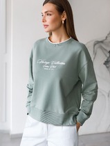 Свободный свитшот с принтом и разрезами из эластичного футера двухнитки без наче