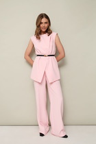Перед с вертикальными рельефами, что зрительно "вытягивает" фигуру. Боковые части переда и спинка с диагональным расположением рисунка в виде ажурных полос. Рукава втачные, короткие.