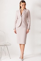 Юбка прямая, на приточном эластичном поясе с отделочным шнуром. По заднему полотнищу юбки вытачки, средний шов и подрез.