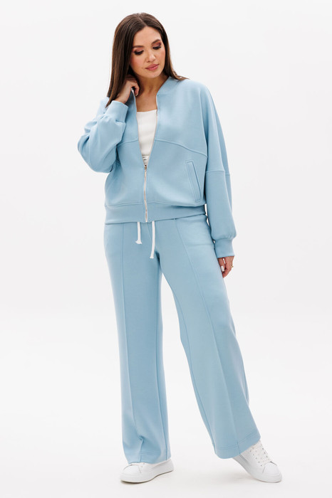 Костюм состоит из свободной лёгкой куртки на разъёмной тесьме -молнии и прямых брюк.