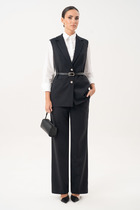 Юбка макси, на притачном эластичном поясе с большими накладными карманами на переднем полотнище. Заднее полотнище с центральным швом, шлицей, талиевыми вытачками и застёжкой.