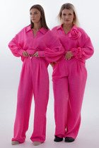 Комплект выполнен из качественного хлопчатобумажного полотна. Натуральная ткань обеспечивает воздухопроницаемость, мягкость и комфорт в течение всего дня. Материал держит форму, сохраняя аккуратный и стильный силуэт.