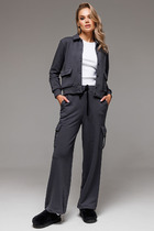 Костюм Gowear из футера в стиле smart casual поможет создать в меру строгий и одновременно расслабленный образ. Костюм состоит из жакета и прямых брюк. Жакет прямого силуэта с воротником и лацканами, имеет удобные карманы и застежку на 2 пуговицы. На левом лацкане вышивка-логотип в контрастном цвете. Низ и борта имеют открытые края (эффект необработанного шва), укреплены дополнительной строчкой. Жакет без подкладки. Брюки прямые. На передних половинках - отделочная строчка по стрелкам и удобные боковые карманы. Пояс из ткани кошкорсе, с резинкой и контрастным шнурком.