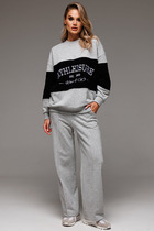 Женский яркий, повседневный костюм, состоящий из оверсайз свитшота с контрастной вышивкой и брюк со стрелками. Это находка для тех, кто ценит свободу, стиль и не хочет отказывать себе в комфорте 24/7.