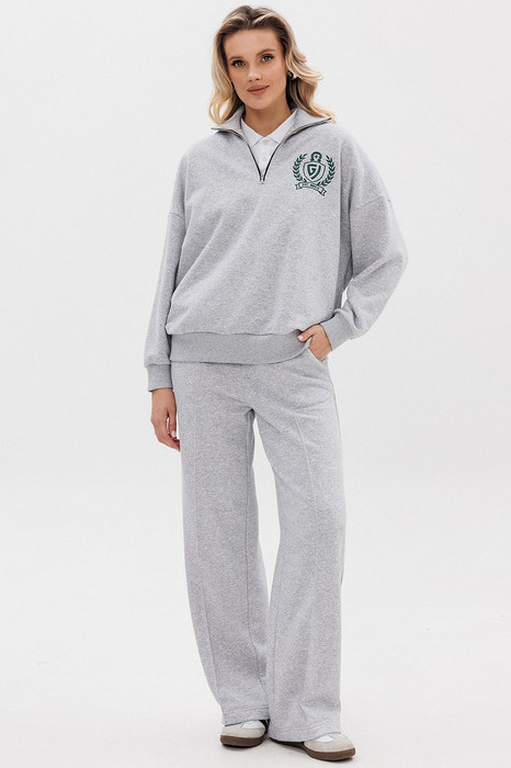 Женский яркий, повседневный костюм, состоящий из оверсайз свитшота с контрастной вышивкой и брюк со стрелками. Это находка для тех, кто ценит свободу, стиль и не хочет отказывать себе в комфорте 24/7.