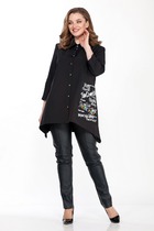 Блузон без воротника, с круглым вырезом горловины, застежкой на навесную петлю и пуговицу по горловине спинки. Перед со средним швом, фигурными рельефными швами. Спинка со средним швом, разрезом по горловине, талиевыми вытачками. Рукав короткий, втачной.