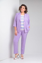 Костюм женский с брюками, футболкой и удлиненной рубашкой из шифона. Рубашка прямого силуэта со втачными рукавами и разрезами по бокам, застежка-планка на петли и пуговицы. Базовая трикотажная футболка полуприлегающего силуэта с небольшими втачными рукавами и декоративной печатью. Футболка прошла тестовую стирку при температуре 30 градусов: печать не линяет и не тяет цвет. Брюки полуприлегающего силуэта заужены к низу, притачной пояс на резинке по бокам, застежка на молнию, петлю и пуговицу, в боковых швах карманы. Уход за изделиями из шифона: