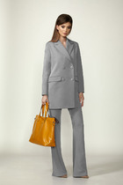 Женский костюм, состоящий из джемпера и брюк. Джемпер выполнен из мягкого трикотажа с добавлением ангоры, рукава со спущенной линией плеча, горловина округлой формы, по низу джемпера и рукавов - функциональные разрезы. Брюки выполнены из костюмной ткани с содержанием вискозы, прямые к низу, пояс притачной с резинками по бокам, в боковых швах функциональные карманы.