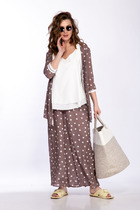 Костюм женский, состоящий из джемпера и юбки. Джемпер полуприлегающего силуэта, из трикотажного полотна средней плотности, рукава цельнокроеные; застежка на молнию по спинке, по переду декоративные бусины - жемчуг. Юбка полуприлегающего силуэта на подкладке с антистатическим эффектом; с завышенной линией талии, на поясе- обтачке, по спинке застежка на молнию, внизу шлица.